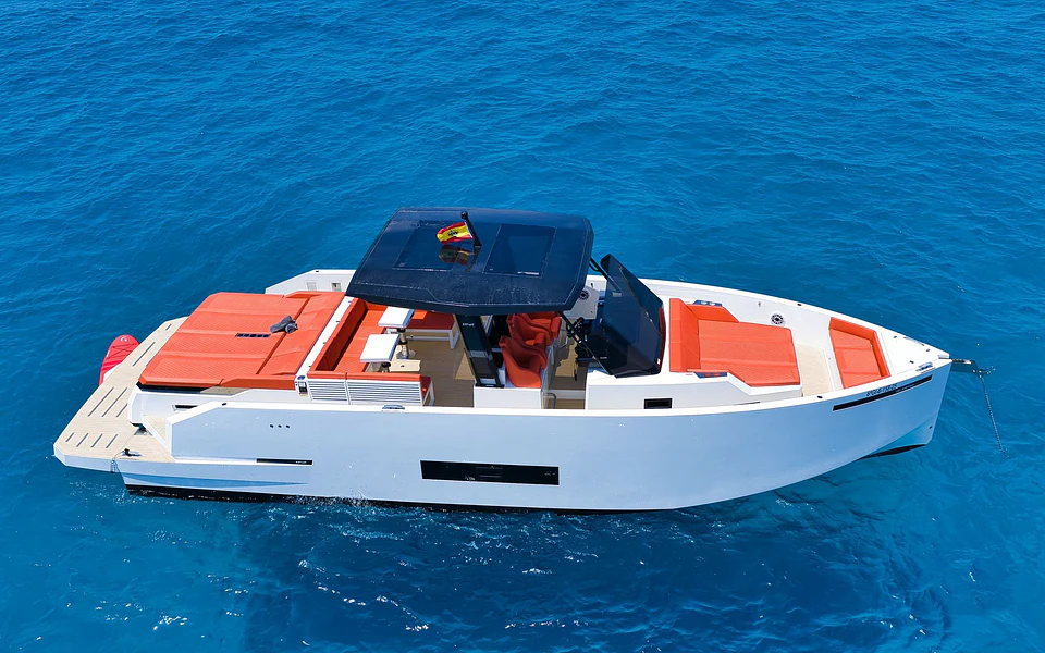 Découvrez l'expérience de luxe ultime à bord de notre tout nouveau yacht De Antonio D42 Open 2025, disponible à la location dans les eaux magnifiques d'Ibiza. Ce navire élégant et moderne est conçu pour les clients exigeants à la recherche d'un confort et d'un style inégalés, parfait pour explorer les criques cachées et les côtes vibrantes. Avec une capacité généreuse pouvant accueillir jusqu'à 12 personnes, le D42 Open offre un vaste espace de pont, comprenant de luxueux bains de soleil à l'avant et à l'arrière, un magnifique pont en teck et des sièges de cockpit confortables. Profitez de baignades rafraîchissantes grâce à l'échelle de bain pratique et à la douche de cockpit, ou détendez-vous à l'ombre du hard top et de l'auvent de proue. Équipé d'une technologie de navigation de pointe comme un traceur de cartes/GPS, un pilote automatique et un propulseur d'étrave, votre voyage sera fluide et sans effort. Des équipements modernes tels que des WC électriques, un onduleur, des prises USB/230V et un réfrigérateur garantissent que toutes les commodités sont à portée de main. Pour le divertissement, un système audio premium avec Bluetooth est inclus.